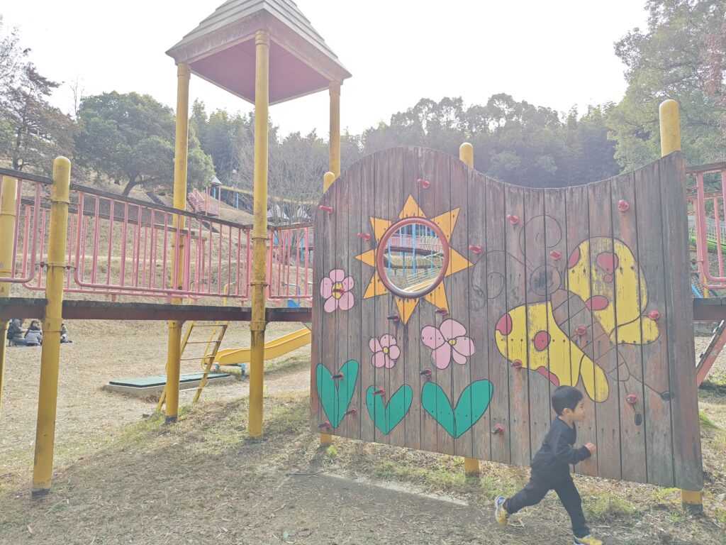 3歳児も楽しめるボルダリングのような遊具がありました。太陽から顔を出せばフォトスポットにもなりますよ。