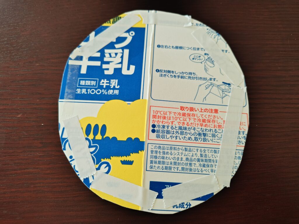 1,牛乳パックをおよそ直径12〜13センチの円形にカットする