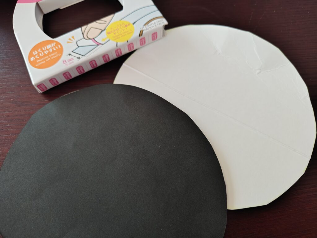 2,黒画用紙も同じサイズにカットし、両面テープで貼り合わせる