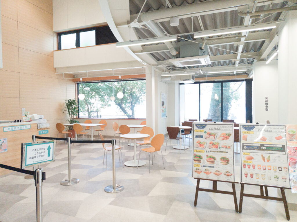施設内に入ってすぐのカフェエリアは、明るく広々としていました。