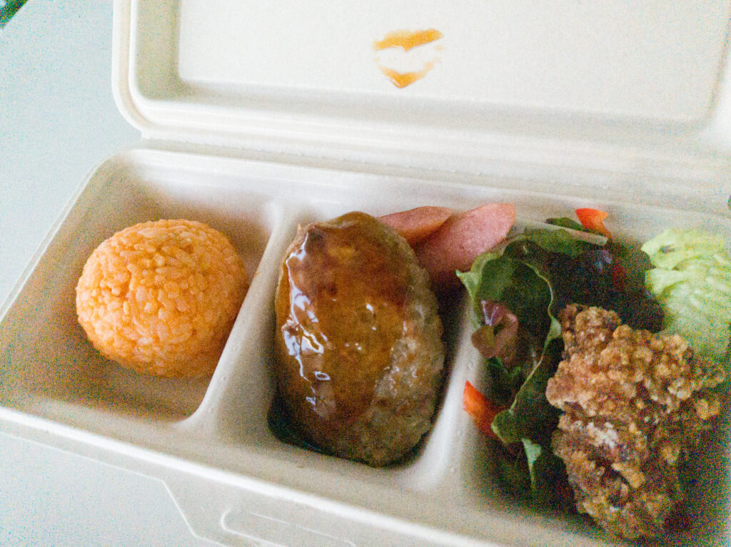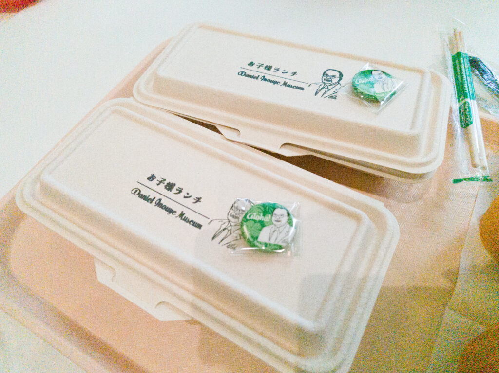 お子様ランチにはイノウエ氏の缶バッジがついていました☆