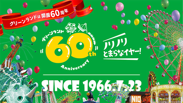 アトラクション数日本一のグリーンランドは、1966年の開園以来、たくさんのファミリーに愛され、なんと今年で60周年!