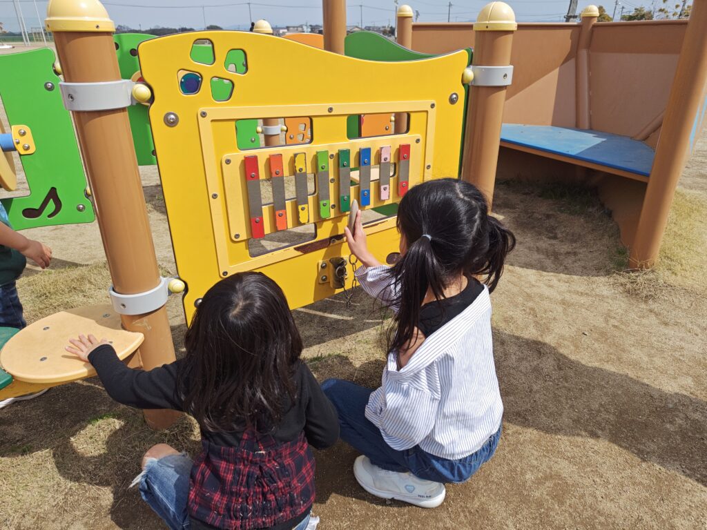 すべり台やロッククライミングなどもあり、自然と体を動かしながら楽しんでいました。