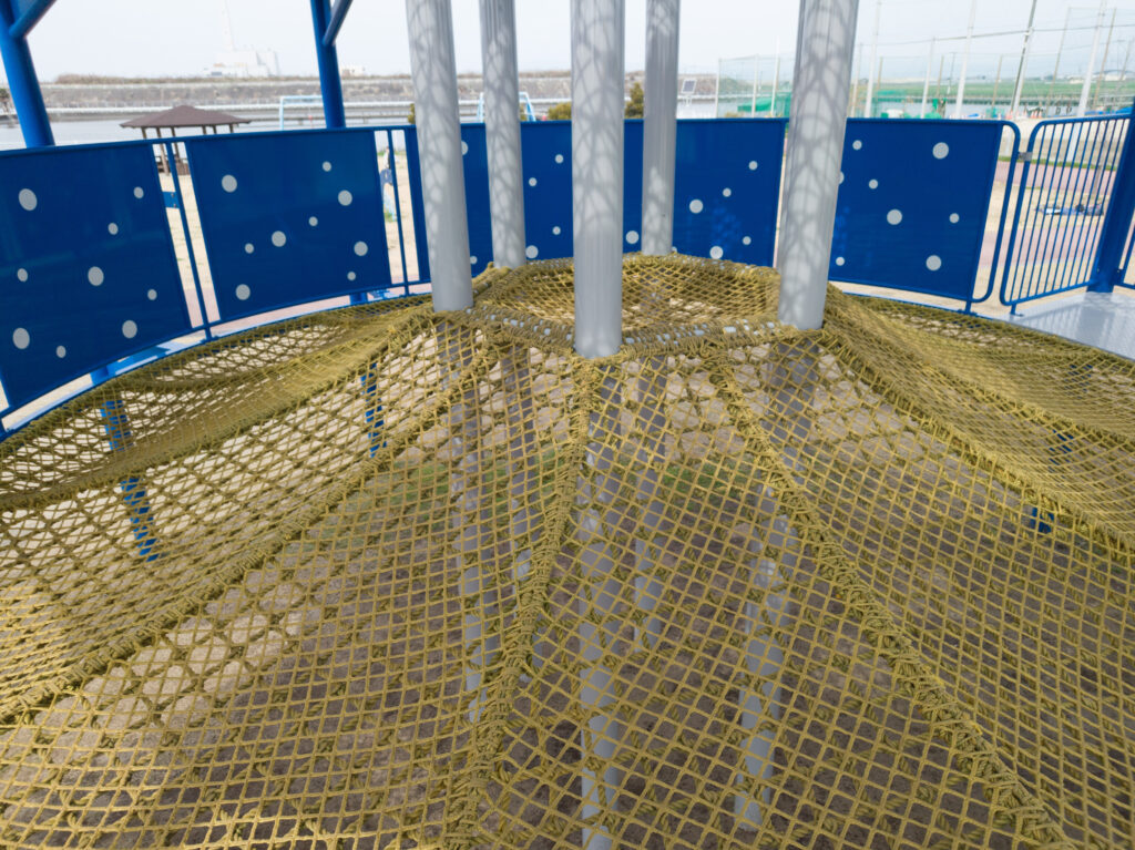 2階と3階部分にはネット遊具があり、トランポリンのように遊んだり、登ったりおりたり自由に遊んでいました。