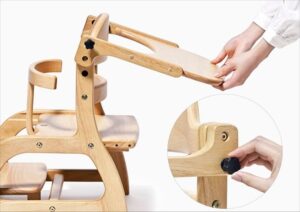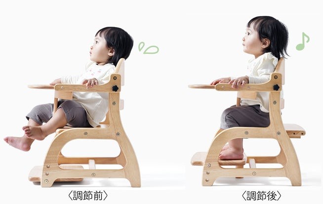 そのため、姿勢が安定しやすく、座板の奥行きや足置き板の高さが成長に合わせて調節できることで、常に正しい姿勢で座れる商品として「自然できれいな歯並びを育てる子育て」を普及している「一般社団 法人 歯並び育児(R)協会」の推奨商品となっています。