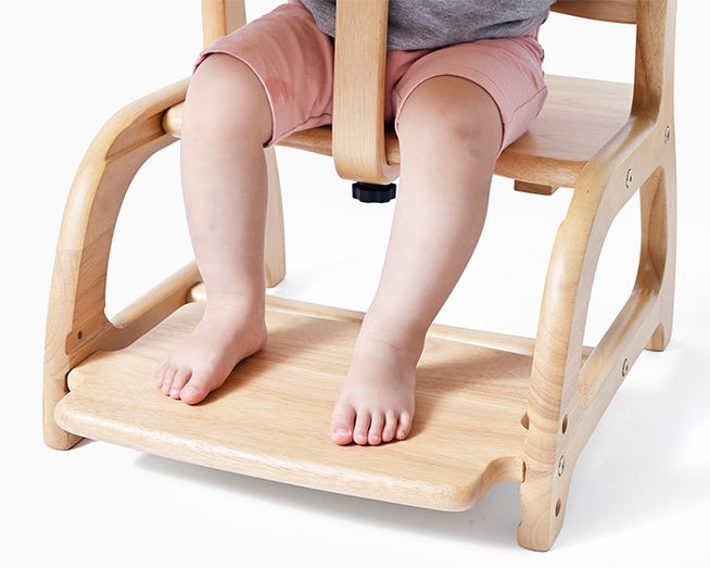 座り慣れていない子どもの足裏全体をしっかり置くことができる広い足置き板。